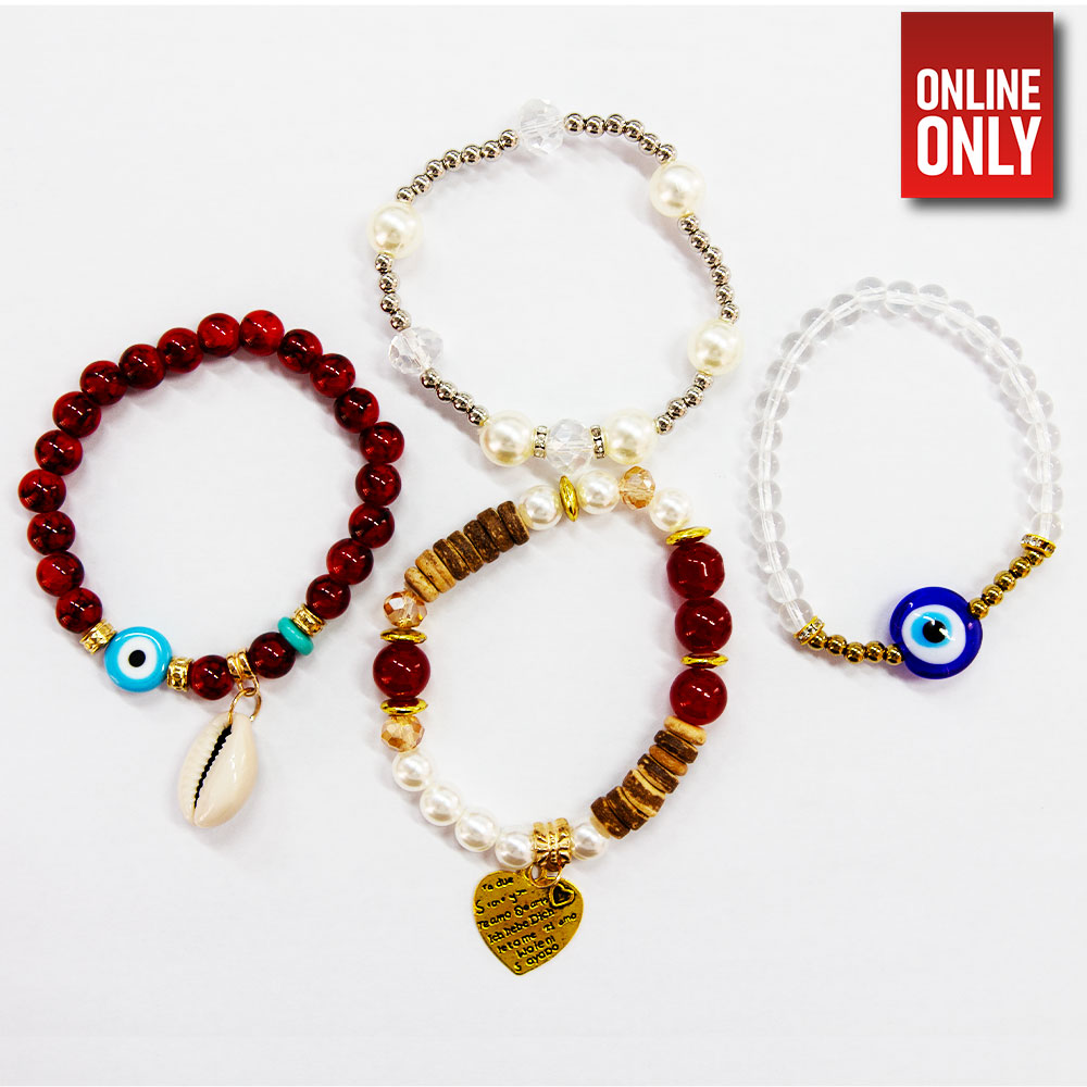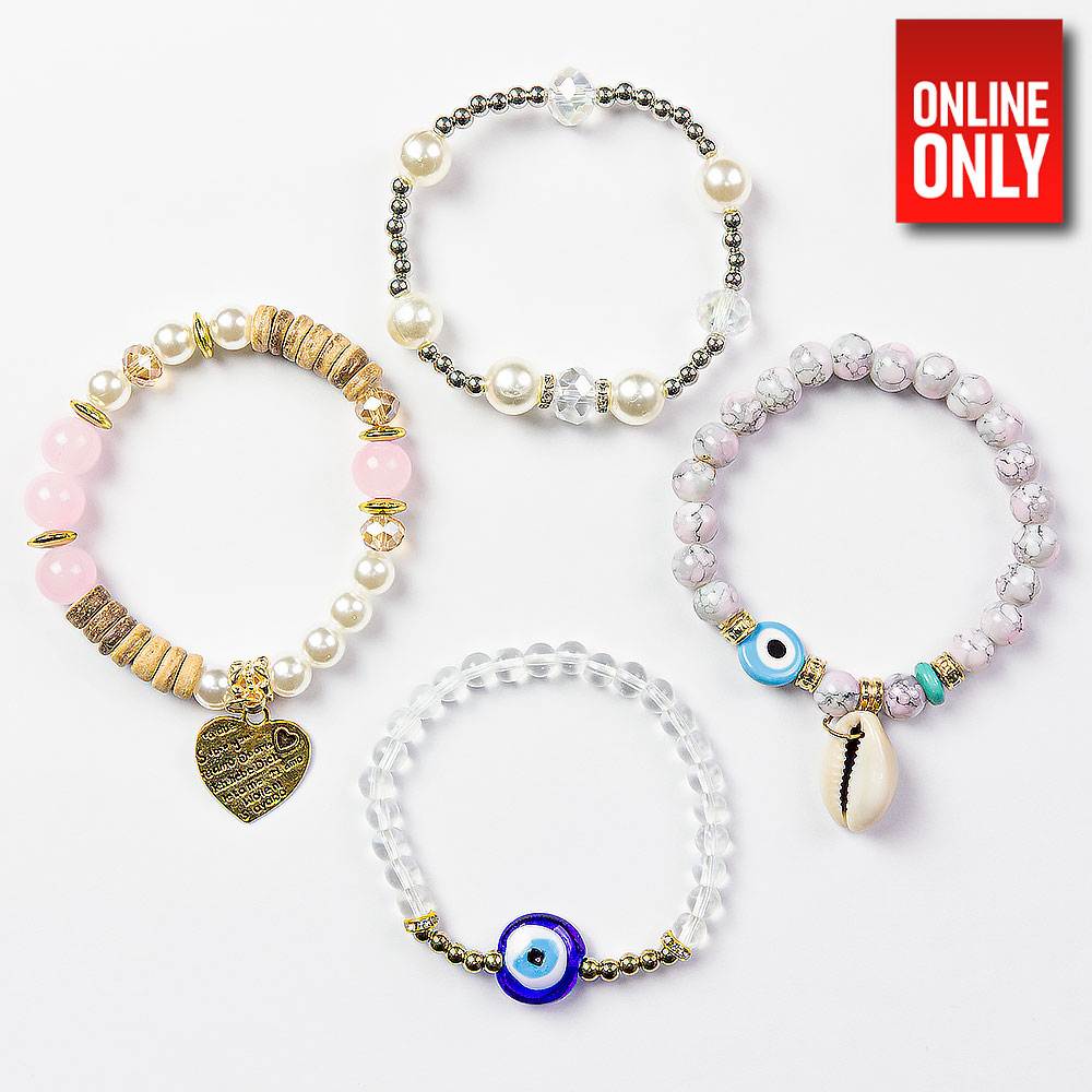SET OF 4 EVIL EYE STRETCH BEADS CLEAR BRACELET | 422295C