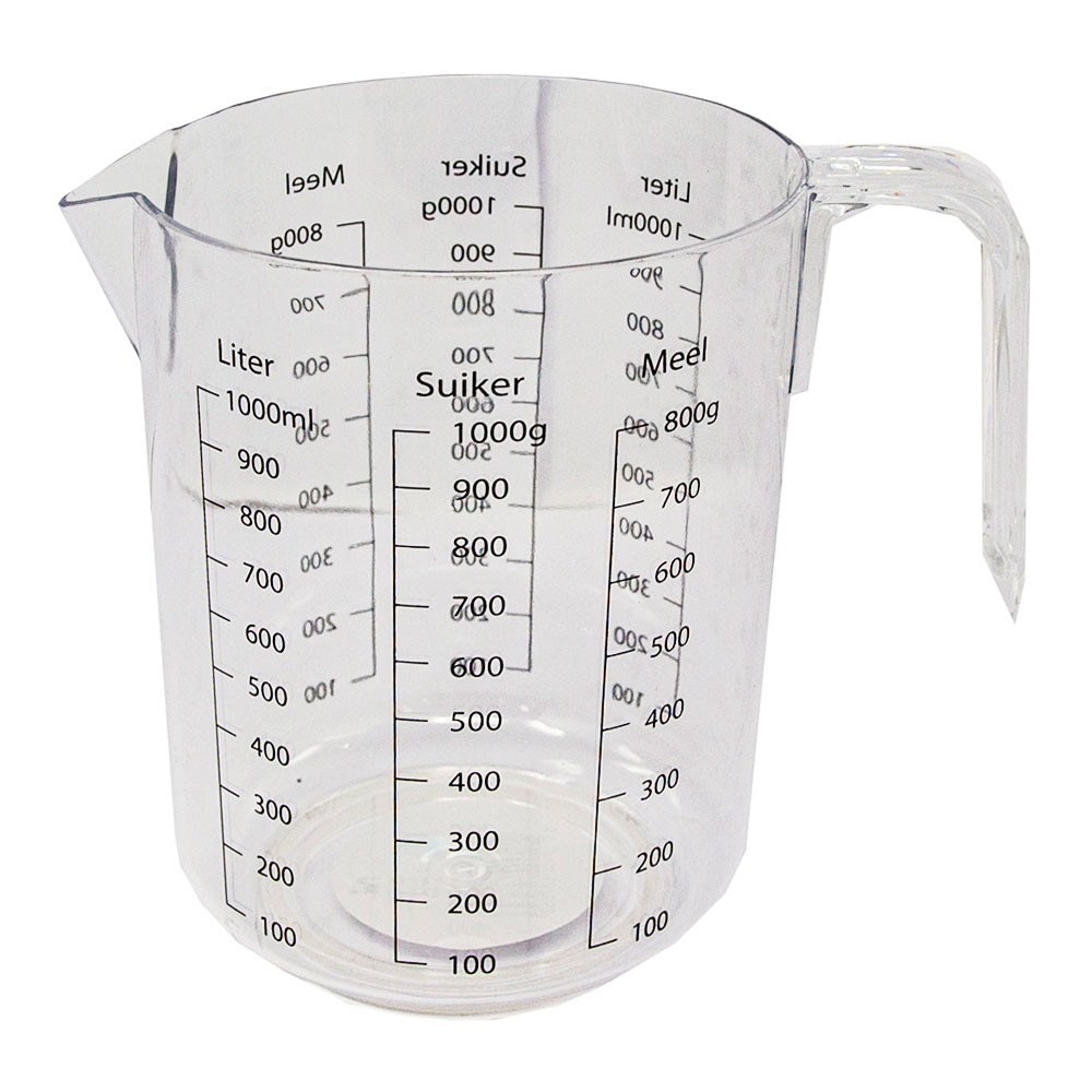 With this measuring cup you can easily measure quantities up to 1 liter.