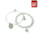 Keep the ocean close and go with the flow. This expandable wire bangle features an oval charm with a powerful wave and the mantra ‘roll with the tides’ on the back.