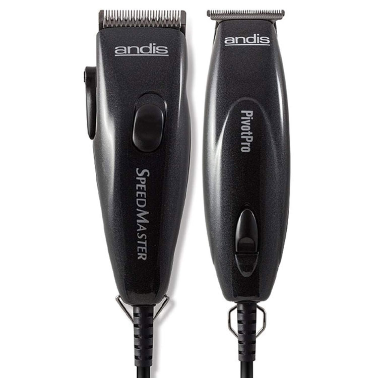 The new Pivot Motor Combo from Andis answers the need for speed. The SpeedMaster Clipper and PivotPro Trimmer, both sport Andis pivot motors; The workhorse that offer four times the power of magnetic motors. Perfect for cutting thick, heavy or wet hair with ease, the SpeedMaster Pivot Motor Clipper has an adjustable stainless-steel blade that goes from 000 to 1 with a touch of the lever.