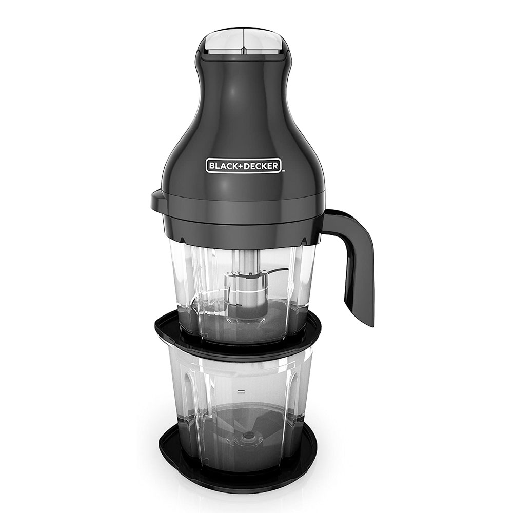 The Black + Decker Prep & Blend Multi-Chopper simplifies time-consuming kitchen tasks. The two-tier stainless steel blade with Infinium Blade Technology combines the performance of a chopper, mixer, and blender to give you fast, consistent performance every time. The high/low pulse control lets you find the right texture for your favorite salsas, soups, and dips. Cleanup and storage are easy with the dishwasher-safe 5-cup nestable and stackable plastic bowls.