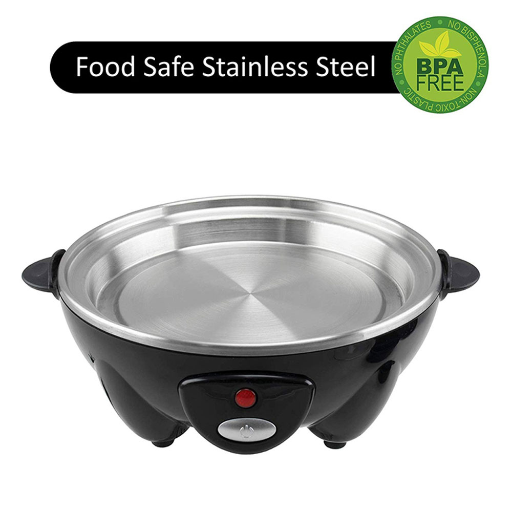 Cook perfect eggs every time with the Brentwood TS-1045BK Electric Egg Cooker. Just add water, place your eggs and hit the power button. Soft, medium or hard boil up to 7 eggs, poach 2 eggs, and cook a 3 egg omelet. Boil dry protection with auto shut off. Trays stack inside egg cooker for easy storage.