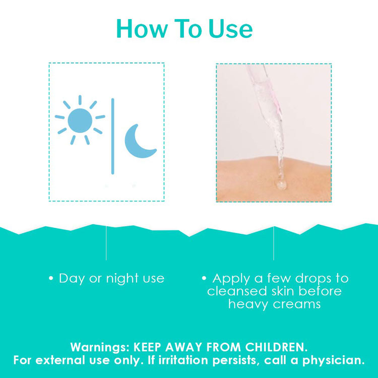 Day or night use. Apply a few drops to cleansed skin before heavy creams.