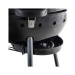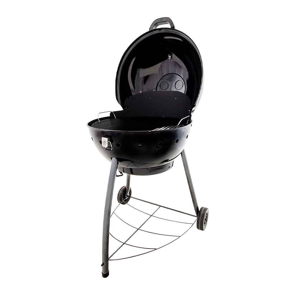 the Char-Broil Kettleman Charcoal Kettle Grill features a hinged lid, which props open, allowing the griller to tend to the charcoal and food with both hands. No need to place the lid on the ground or hang off the side of the grill.