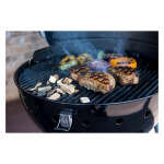 Porcelain-coated, rust-resistant cooking grate keeps food on top, prevents flare-ups and distributes heat evenly.