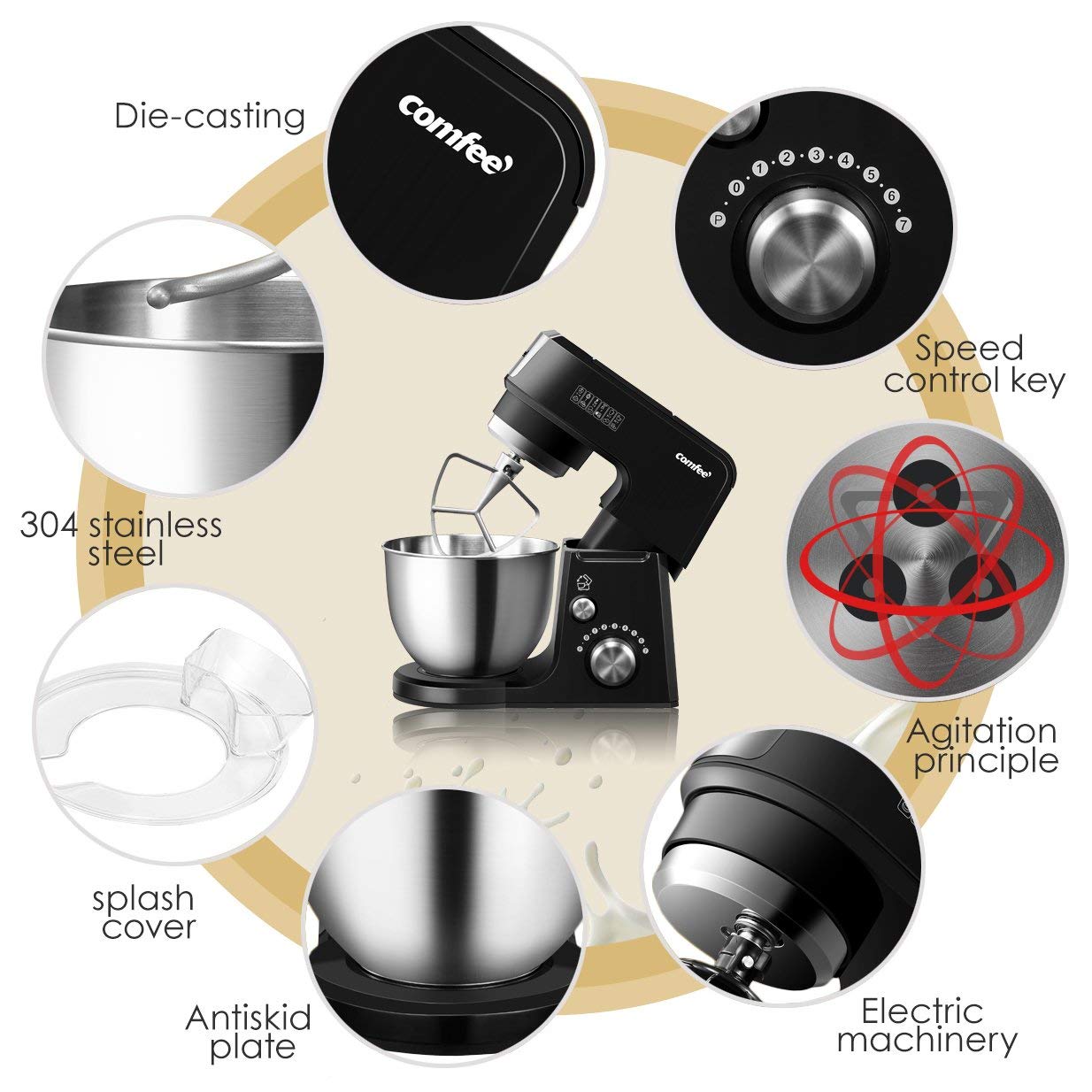 Multi function stand mixer with optional accessories​, makes it easy to enjoy pasta, taco and different kinds of juice, smoothies with family members at home. |