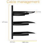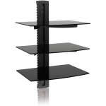 The Ematic DVD Player Wall Mount Kit safely mounts your DVD player and other components to your wall. Includes all mounting hardware. Universal DVD Mount.5mm black tempered glass shelf. Max load capacity 17.6 lbs. Adjustable shelf height. Cable management. All mounting hardware included.