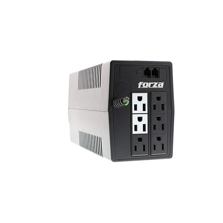 What are the benefits of a UPS? Avoid Data Loss- if the power goes out unexpectedly while you are in the middle of working on something important on your computer there is the potential for significant data loss unless you have recently saved everything you were working on. A UPS notifies when you are running on battery power allowing time to save and correctly shut down the system. Reduced Down Time- if you’re working from home or running a business the down time associated with power loss could potentially result in financial loss. The UPS is only a stop gap but can provide around 30 minutes of power with using a PC. Additional Equipment Protection- by protecting against random power anomalies, your equipment that is plugged in to the UPS will be typically protected from unexpected power surges, voltage spikes and brownouts. Forza’s NT series is designed to provide electric protection for your personal computer and peripherals. WIth its compact size, the unit is ideal for small work spaces at the office or at home. Although small in size, it provides the maximum protection against the constant threat of electrical supply outages. Uninterruptible Power System Highlights: -Power protection for home and office equipment -Automatic voltage regulator -Boost and buck AVR to stabilize voltage -6 outlets with surge protection, battery back up and -Voltage regulation -Phone, Fax & modem protection (RJ-11)