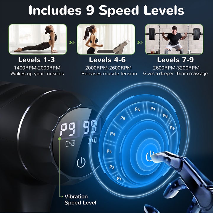 • Comes with massage gun, interchangeable massage heads, charging cable, quick start guide and user manual