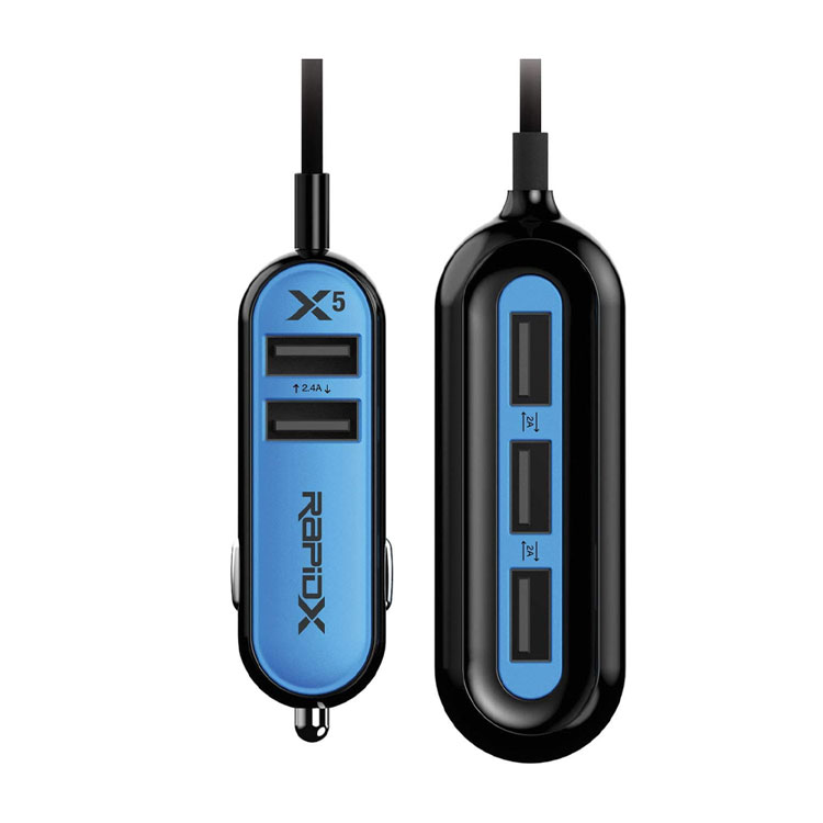 RAPIDX X5 CAR CHARGER WITH 5 USB PORTS BLUE | RX-X5USBB