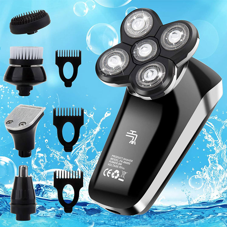 Multifunctional bald head shaver: 5 detachable attachments, meet all your needs for hair trimming and facial care