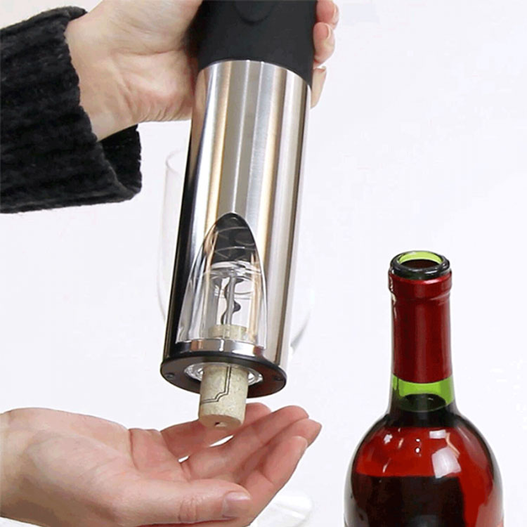 Whether you choose a bottle of fine Cabernet or your favorite Sauvignon Blanc, cork removal has never been easier. With the touch of a button, easily remove natural and synthetic corks from wine bottles. 4 batteries will remove up to 150 corks. Clear viewing window lets you see the cork being removed. Soft touch material is attractive comfortable to hold.