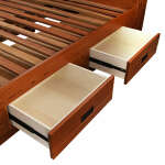 This wooden bed frame offers total four drawers (two drawers on each side) which you can pull out from the side to store extra blankets, bedsheets, and pillow covers! The headboard also provides a good backrest for you to lean back as you surf the net or do some reading before bedtime.